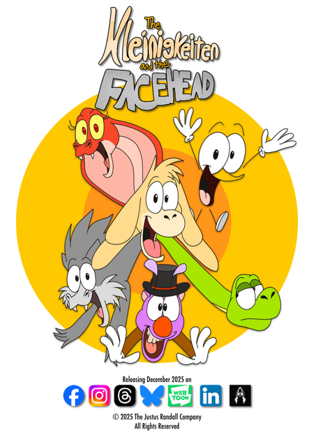 The Kleinigkeiten and the FaceHead follows a world inhabited by fictional anthropomorphic animals such as Kleinigkeitens, FaceHeads, Lapuias, Barshibols, and many more to come later on in the series. It also features nonfictional anthropomorphic animals too. It’s an episodic action-packed slapstick comic series with fun-filled entertainment aimed at children’s audiences of 7-14 years.It focuses on two best friends, Elliot and FaceMan as they experience a bunch of misadventures with Shiny, Wolfing, Bark, & Jeffery. There are many villains and chaotic occurrences they're going to face, while they in some episodes unintentionally brought the problems on themselves.